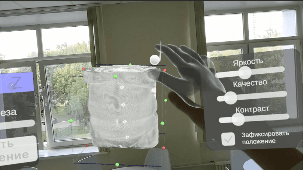 Медицина | ARПриложение предназначенное для обработки и интерактивного анализа медицинских томографических данных с управлением жестами в дополненной реальности. Основная функция программного обеспечения заключается в поддержке хирурга при планировании операции посредством AR-визуализации медицинских томографических данных.